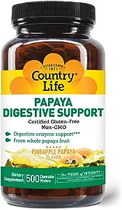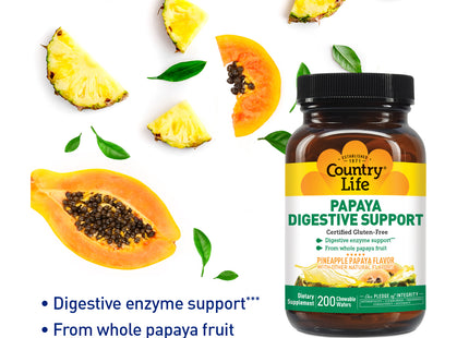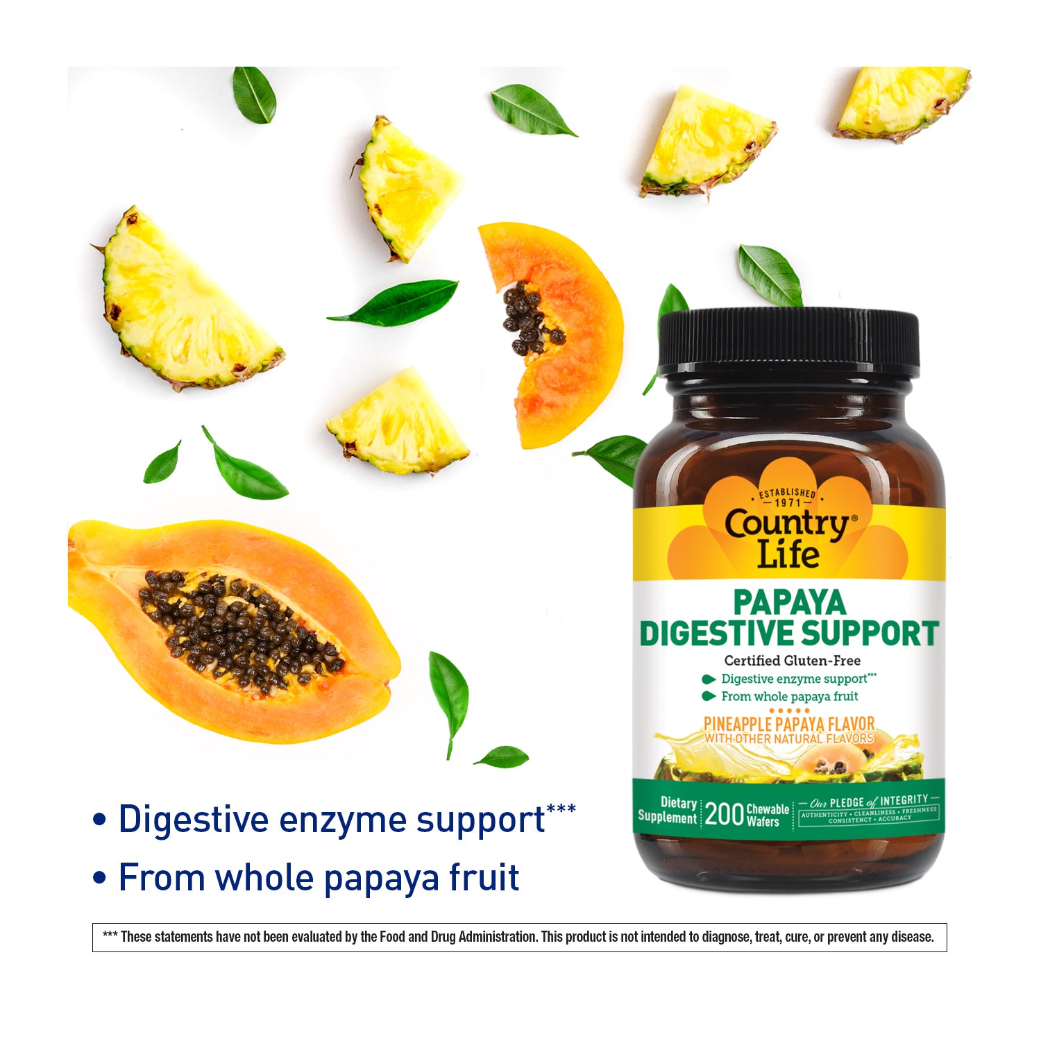 Digestive enzymes are essential to the body’s absorption of food nutrients.** The digestive enzymes in our Papaya Digestive Support helps you break down the food you eat, to assist with digestion and the absorption of nutrients.** We source the enzymes papain and protease from whole papaya fruit. Each chewable wafer has a delicious natural pineapple and papaya flavor – perfect after every meal.