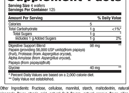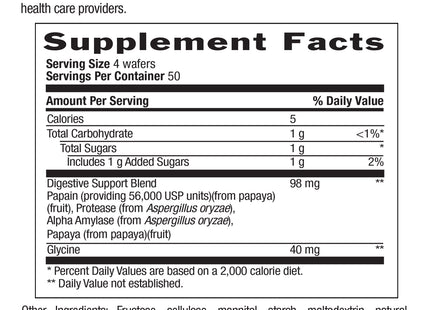 | Directions:Adults chew four (4) wafers after each meal, up to three times a day. As a reminder, discuss the supplements and medications that you take with your health care providers. |