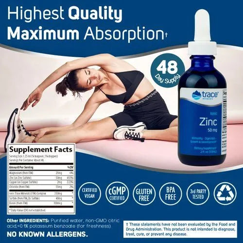 Liquid Ionic Zinc is a rich concentrated liquid dietary supplement that provides zinc in ionic form – the form most widely recognized by the body. The balanced liquid form allows for variable dosing.† Also contains a full spectrum of concentrated Ionic Trace Minerals.