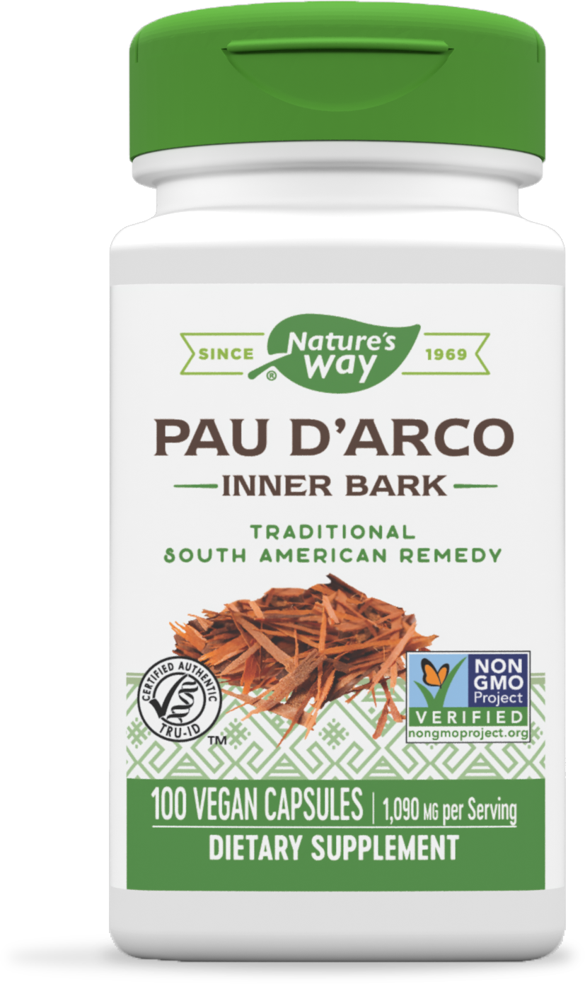 Pau d’arco comes from the bark of trees grown in South American rainforests. Its name is translated to “bow tree” from Portuguese, as the trees have been used to make bows and arrows. Its bark has been used throughout history, including being boiled down into tea. We source Nature’s Way Pau d’Arco where it grows best and use three levels of testing methods to make sure it meets our high-quality standards.