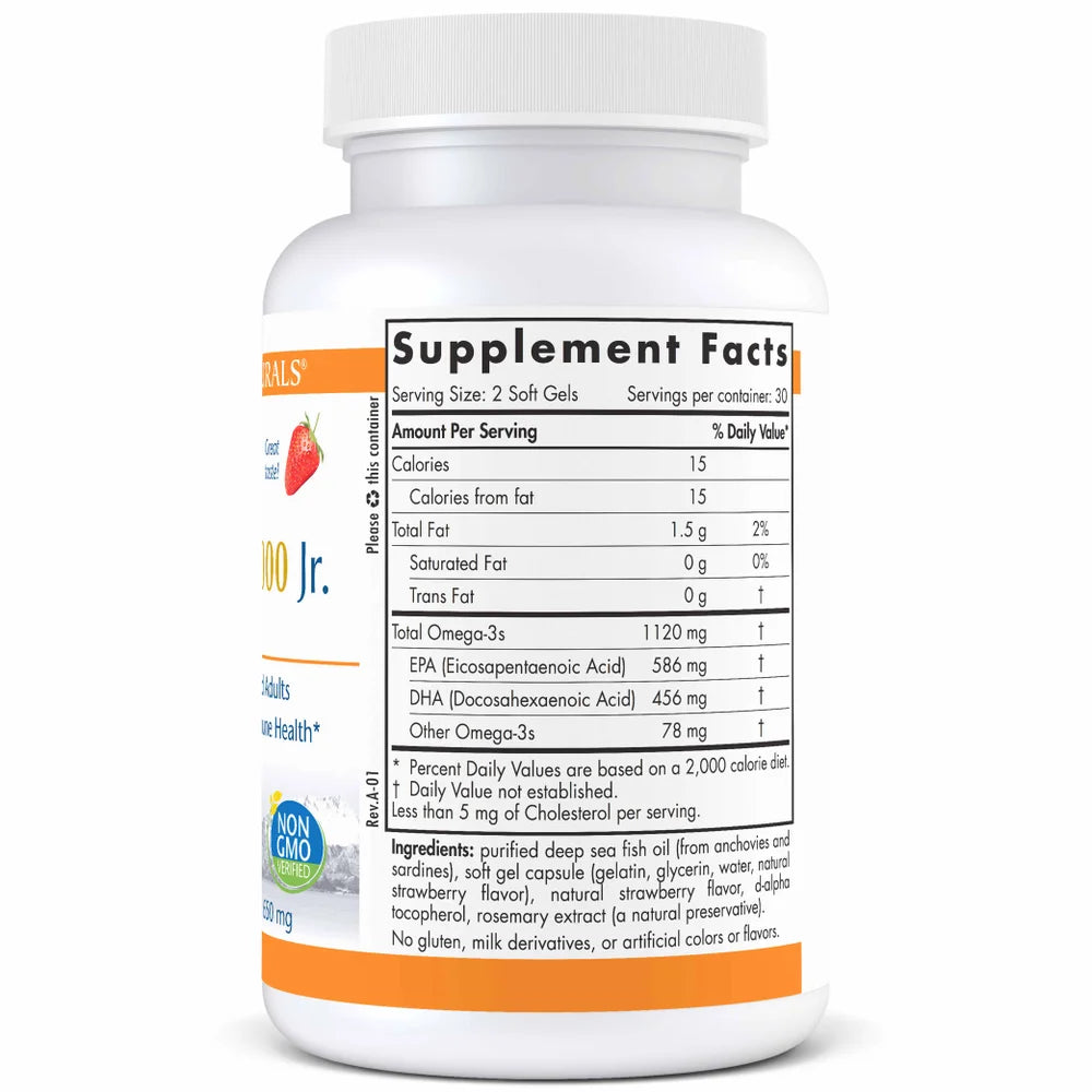 ProOmega® 2000 Jr. delivers over 1000 mg of concentrated omega-3s EPA and DHA. It is ideal for anyone wanting concentrated omega-3s in a great-tasting, smaller soft gel.