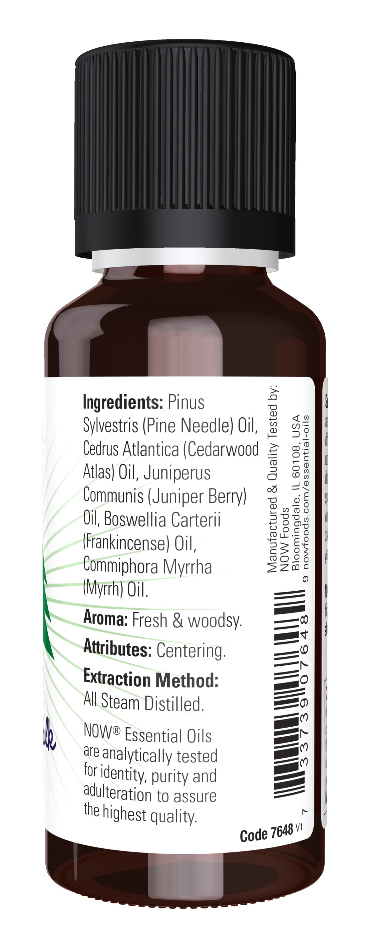 Ingredients: Pinus Sylvestris (Pine Needle) Oil, Cedrus Atlantica (Cedarwood Atlas) Oil, Juniperus Communis (Juniper Berry) Oil, Boswellia Carterii (Frankincense) Oil, Commiphora Myrrha (Myrrh) Oil.