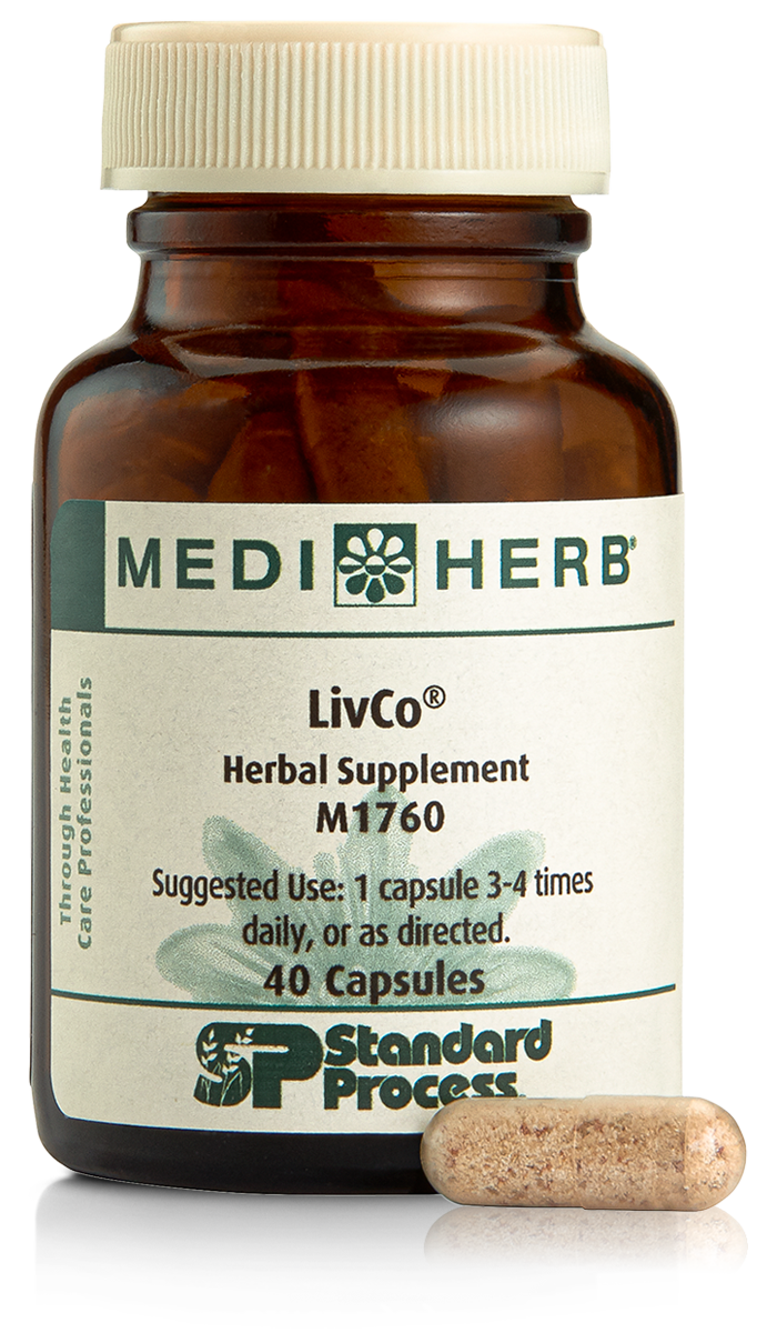 The combination of herbs in LivCo provides a range of compounds for liver cleansing and support including dibenzocyclooctene lignans, phenolic diterpenes (including carnosol and rosmarinic acid), other terpenes, flavonoids and flavanolignans (collectively known as silymarin). The Milk Thistle component of this capsule is standardized to contain 24 mg of flavanolignans per capsule to ensure optimal strength and quality.