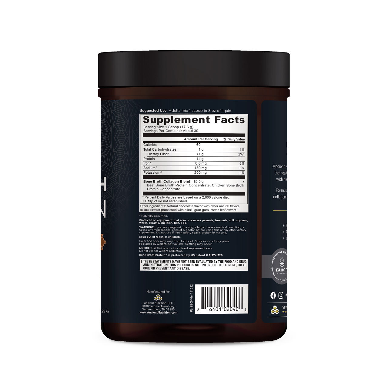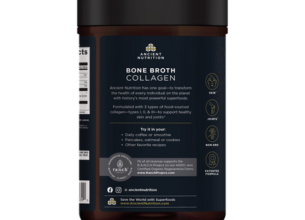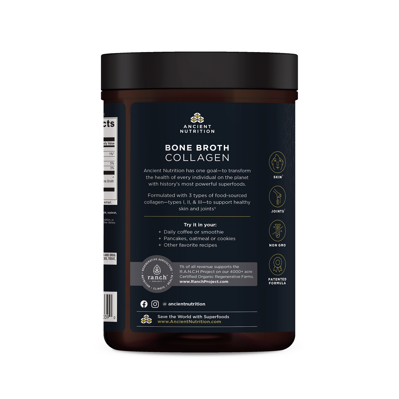 Bone Broth Collagen contains collagen type II (the type of collagen found in your gut lining, joints and cartilage) as well as compounds like glucosamine, chondroitin and hyaluronic acid. Those compounds help your joints move and feel better, with less discomfort and increased mobility. Bone Broth Collagen also features collagen type I and type III from beef bone broth protein concentrate. These compounds help to support healthy joints, skin and a healthy gut.